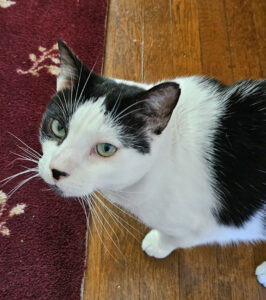 Johanna told me that she had recently gotten another cat, and that was when the eating and spraying escalated. Now there were three cats in her house: Gypsy, a small cat who had lived there for quite a while; and Tommy, who was the recent addition. Johanna said that Patch was kind of a bully with the other cats, though he was super sweet and friendly with people.