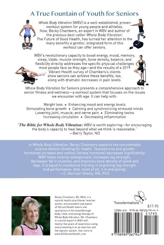 Whole Body Vibration (WBV) is a well-established, proven workout system for young people and athletes. Now, Becky Chambers, an expert in WBV and author of the previous best-seller Whole Body Vibration: The Future of Good Health, has turned her attention to the many benefits a gentler, integrated form of this workout can offer seniors.