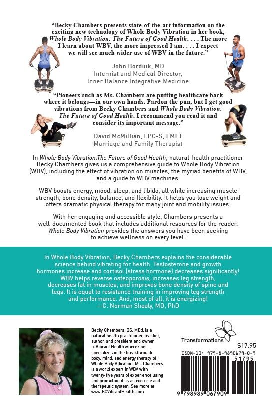 Chambers has also written Whole Body Vibration for Calming Inflammation, Whole Body Vibration for Seniors, Whole Body Vibration for Mental Health, and Homeopathy Plus Whole Body Vibration.